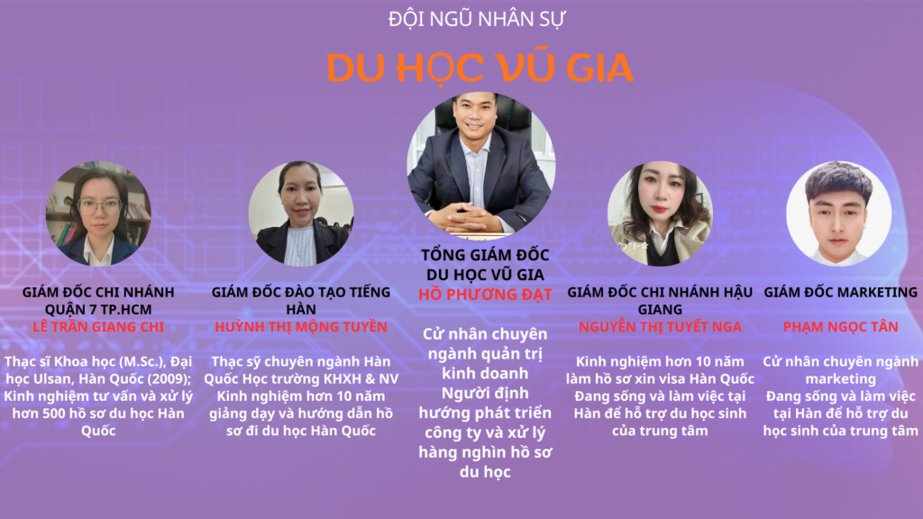 Du học Vũ Gia là đơn vị chuyên tư vấn du học tại Hàn Quốc có nhiều kinh nghiệm trong lĩnh vực du học và xuất khẩu lao động, tạo nguồn nhân lực . Vũ Gia luôn làm việc với phương châm làm việc: Tri Thức – Trách Nhiệm – Tận Tâm.